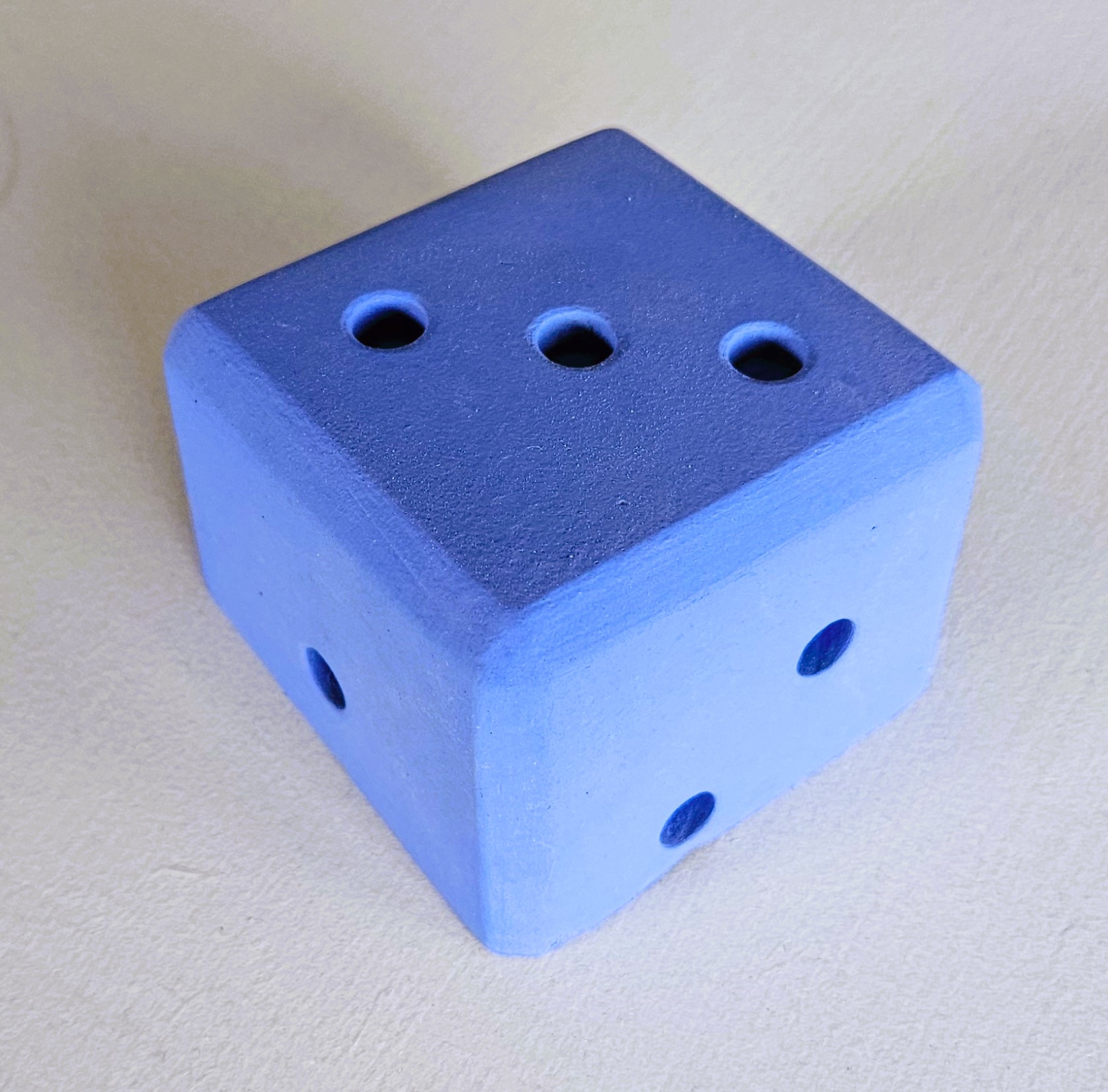 Genomfärgad betongtärning. Finns i många olika färger. Finns hela eller halva tärningar. Se på bilderna. Kan användas som ren prydnad men kan även användas som duktyngd utomhus för att förhindra ett en duk blåser bort.